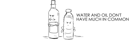 Water and oil don’t mix, because in the mixtures world: like attracts like. And oil and water don’t have much in common. Water is a tiny